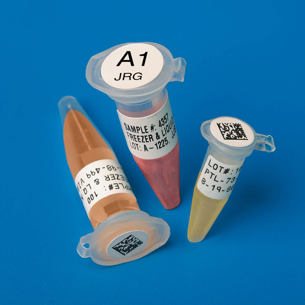 White Freezerbondz Labels - designed for laboratory applications where labels need to be supplied at room-temperature on samples that will eventually be stored in Liquid nitrogen (-196°C).